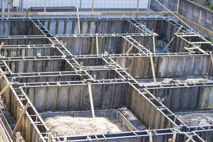 基礎工事は建物づくりのスタートに位置づけられており、測量・型枠工事・土木工事などさまざまな業種が集まってつくりあげていく工事です。基礎工事の良し悪しが建物の強度に大きく影響しますので、プロとして責任をもち、丁寧・確実に施工をいたします。